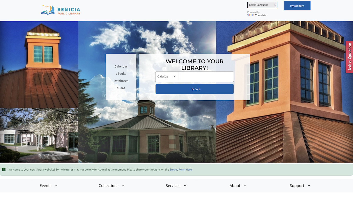 Their previous website used the Drupal CMS platform, was designed in-house, consisted of multiple pages and micro sites, and integrated software from several third parties. The Library desired changes and modifications of structure and content as well as additions as part of the new website and not just a simple migration. Benicia's director and staff was open to using a new/different CMS platform and/or hosting solution provided all needs outlined in Key Issues were met. A flexible calendar feature for events at the library was a also major need.