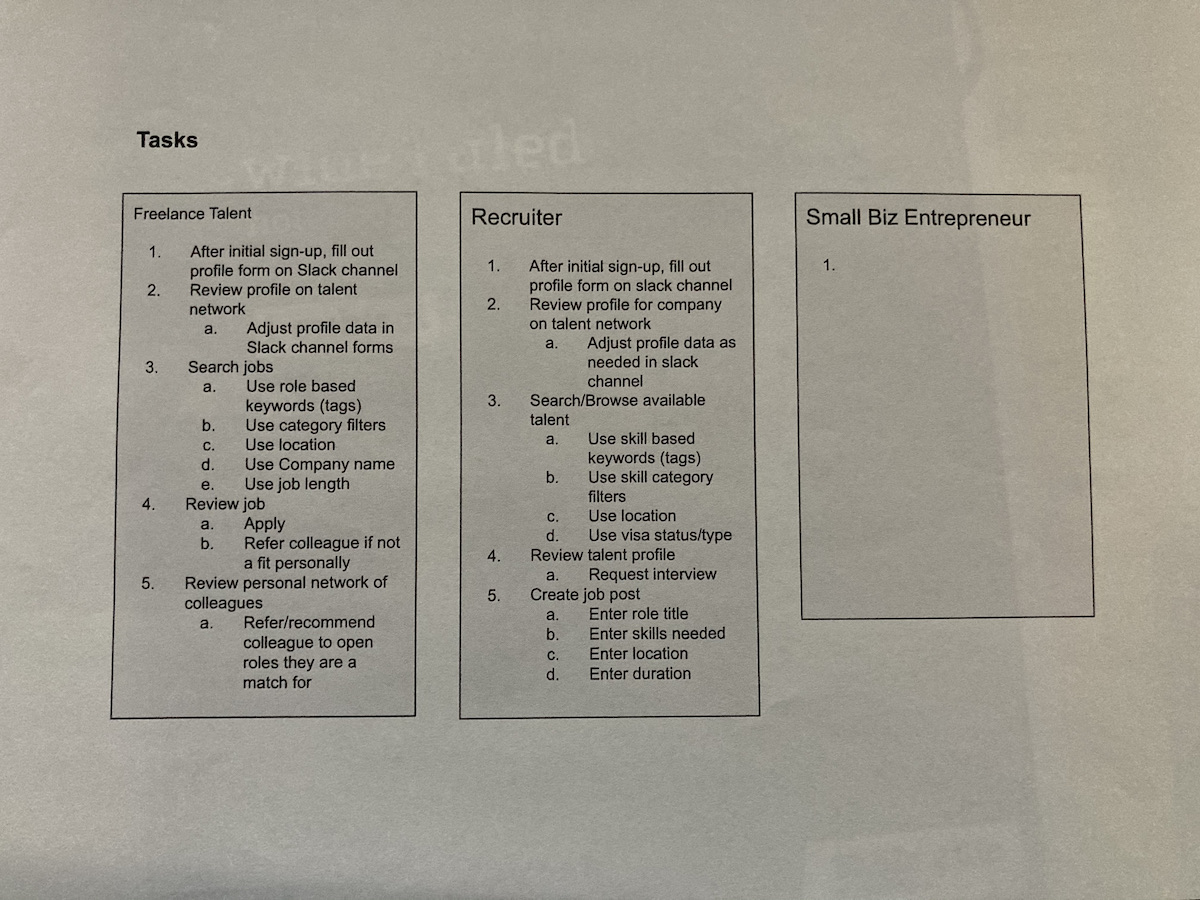 - Next we conducted some excercises to understand who the firm's user types were, and what tasks or jobs those users needed/expected to be able to accomplish on the new site and system.