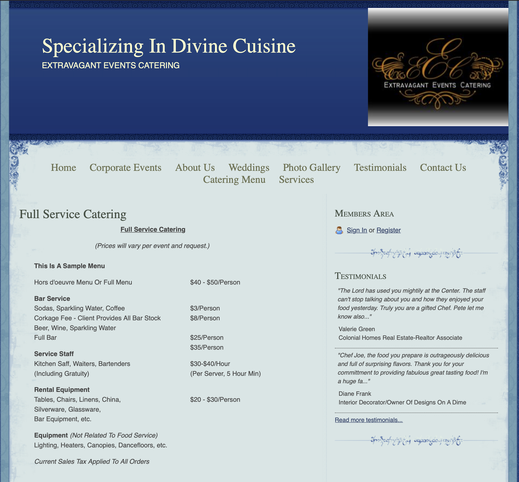 Chef Joseph Ushinski had a site that he had built with an online site creator that was not meeting his needs to run his business online. He needed a new site that would convey his catering services in a professional way, and allow clients to learn about and book dates for catered events.