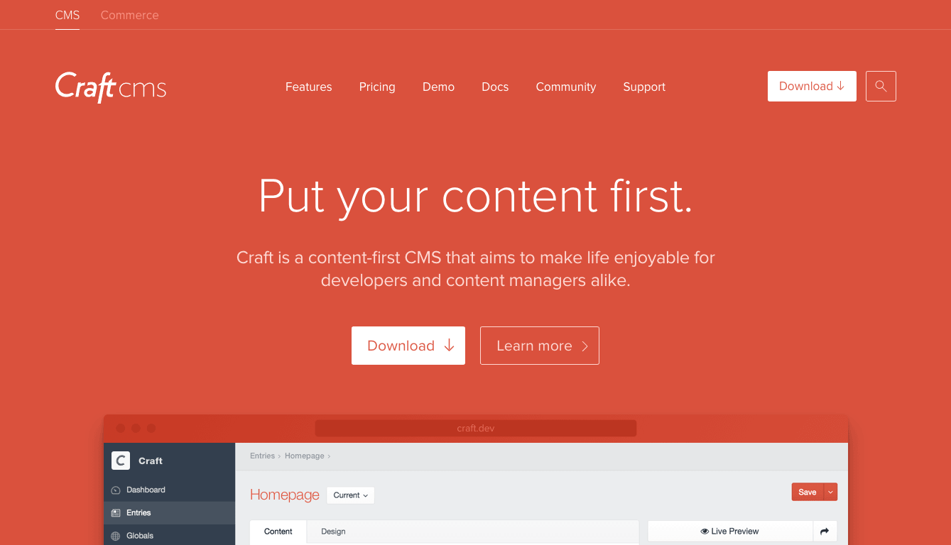 Craft is a content-first CMS that aims to make life enjoyable for developers and content managers alike.